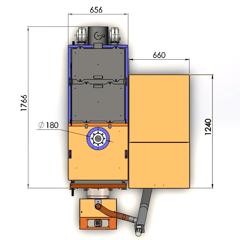 • Додаткові опції. Якщо планується використання палива з високою зольністю, яке забруднює продуктами згоряння теплообмінник, можна замовити дообладнання пелетного котла 100 кВт механічною або автоматичною системою очищення.