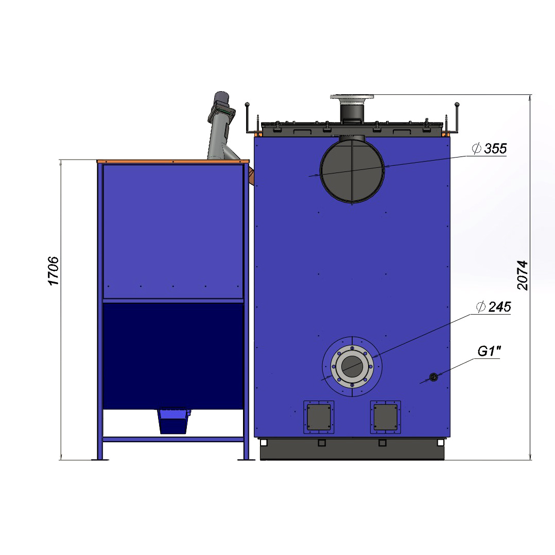 При нормальному функціонуванні пелетного котла 300 кВт, температура газів, що виходять, не перевищує 150°, що є чудовим показником, похвалитися яким може далеко не кожен котел такої ж потужності.